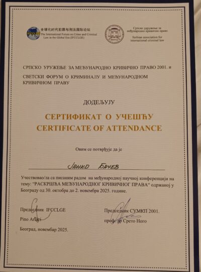 Професорот Бачев се претстави со својот научен труд на тема: „Колективната безбедност воспоставена со Повелбата на Обединетите нации – предлози за ревизија, предизвици и перспективи за реформи“.