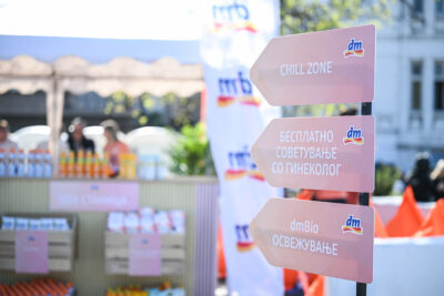 Како дел од настанот, dm беше присутен со свое катче кај фонтаната во Градскиот парк, каде учесничките и посетителите имаа можност бесплатно да добијат совети за женското здравје од специјалисти гинеколози, да дегустираат dmBio безалкохолни коктели и да се освежат со производи за дополнителна поддршка пред и по трката.