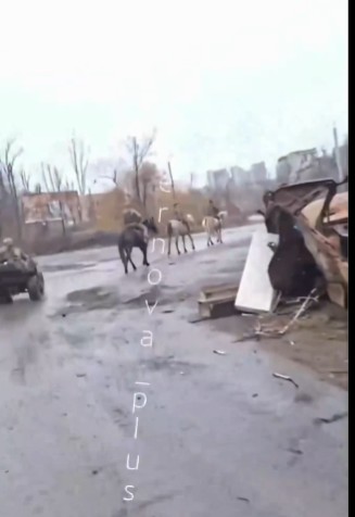 На Телеграм кружат видеа на кои се гледаат руски војници на коњи како се движат кон линијата на фронтот. Во едно од нив, снимено од украинската 92-та Одделна механизирана бригада, еден коњаник е погоден од FPV-дрон, додека друг паѓа по експлозија во негова близина.