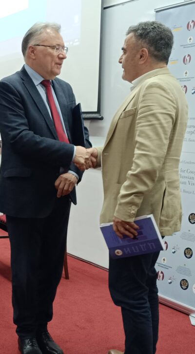 На професорот Бачев му беше искажана благодарност со личното врачувањето на благодарница за неговото учество на конференцијата.