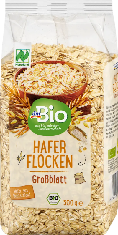 Крупните овесни снегулки dmBio се подготвени од цели зрна овес кои се обработуваат на пареа и потоа се мелат, со што се зачувуваат нивните важни нутритивни вредности. Совршени се за подготовка на хранлив појадок, како мусли или овесна каша, но и како состојка во колачи, бисквити или вегетаријански плескавици. Производот е вегански и претставува одличен извор на енергија за почеток на денот.