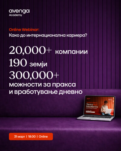 Повеќе информации и пријава за вебинарот се достапни на: https://avengaacademy.com/virtual-internship/
